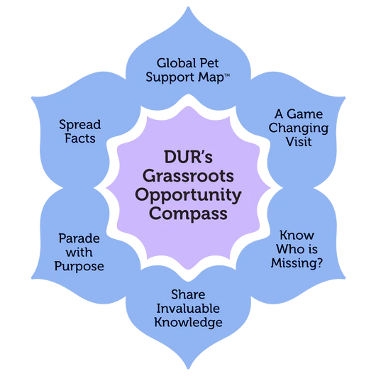 By offering them the easy-to-implement, ever-evolving, and direct opportunities found in our Grassroots Opportunity Compass™ to get involved and make a difference in the life of a less fortunate dog.